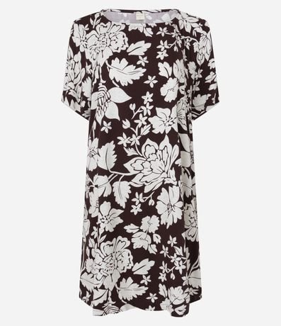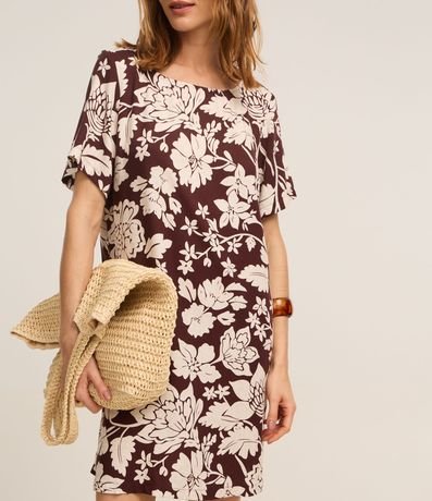 Vestido Reto Curto em Viscose com Estampa Flora