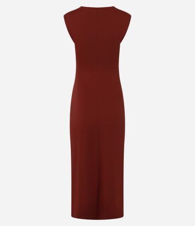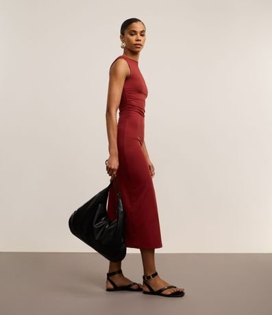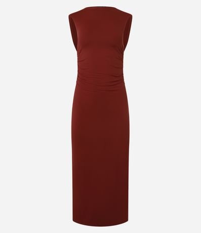 Vestido reto e sem mangas, confeccionado em microfibra, com gola redonda e franzidos nas laterais. A peça em elastano na composição, o que confere maior elasticidade, além de possuir modelagem mais ajustada à silhueta.