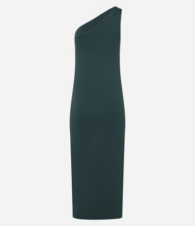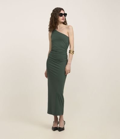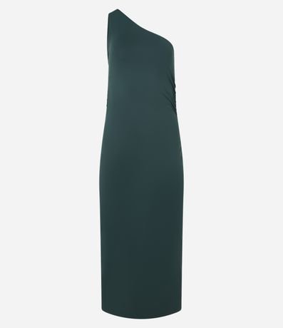 Ref: Vestido reto de comprimento midi e sem mangas, confeccionado em poliamida. Peça tem decote ombro único além de franzidos na lateral.