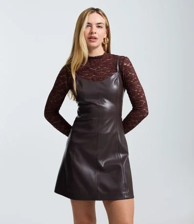 Ref: Vestido skater em PU com alças finas ajustáveis e caimento rodado, trazendo um visual moderno e marcante. Possui decote sutil e recorte estruturado que valoriza a silhueta. Ideal para produções contemporâneas, perfeito para compor looks versáteis do dia a dia.