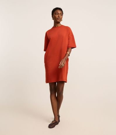 Ref: Vestido t-shirt básico de manags curtas, confeccionado em algodão, com gola redonda e sem estampas. Este produto possui algodão certificado BCI em sua composição, sendo ambientalmente mais responsável.