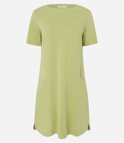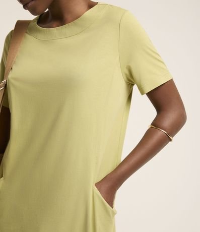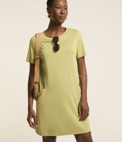 Ref: Vestido de modelo t-shirt, com comprimento acima dos joelhos, confeccionado em viscose, com mangas curtas e sem estampa. Possui bolsos nas laterais.