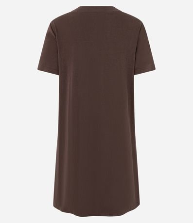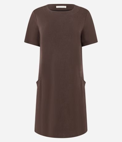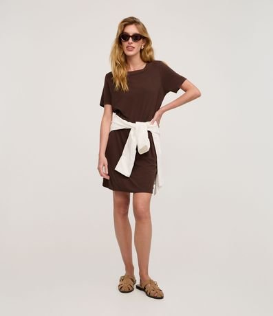 Ref: Vestido de modelo t-shirt, com comprimento acima dos joelhos, confeccionado em viscose, com mangas curtas e sem estampa. Possui bolsos nas laterais.
