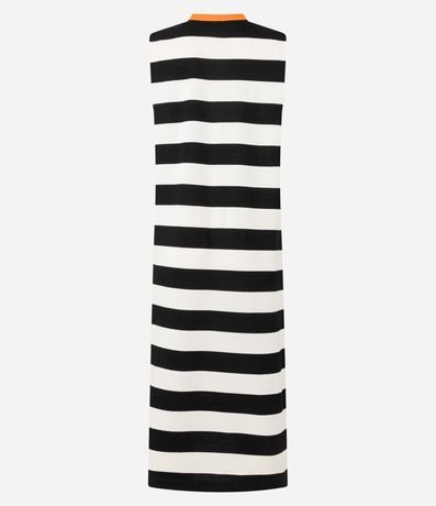 Vestido t-shirt, sem mangas, confeccionada em moletom, com gola redonda contrastante e listras horizontais. Este produto possui viscose certificada em sua composição, sendo ambientalmente mais responsável.