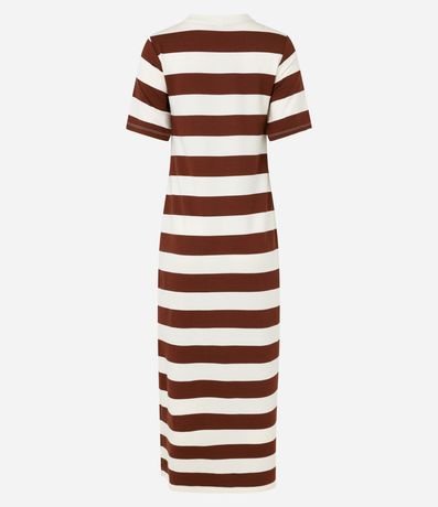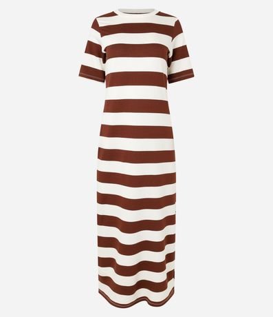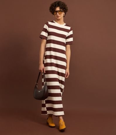 Vestido t-shirt dress, long midi com manga curta, confeccionado em moletinho sem felpa e listras largas.