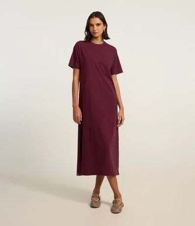 Vestido feminino de modelo t-shirt, confeccionado em malha de algodão mais responsável, com comprimento midi e sem estampa. Possui gola redonda e mangas curtas.
