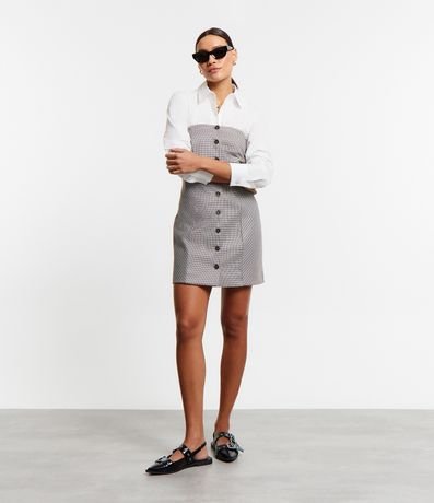 Vestido Tomara que Caia Alfaiatado com Abotoamento e Estampa Xadrez