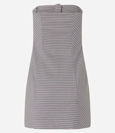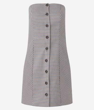 Vestido tomara que caia alfaiatado, com abotoamento frontal e estampa xadrez.