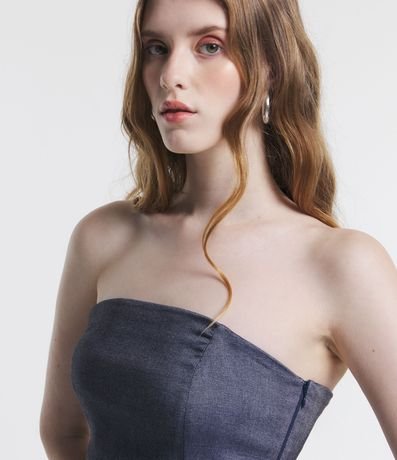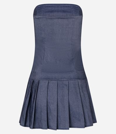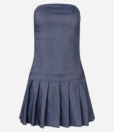 Ref: Vestido curto tomara que caia em bengaline, com recorte cintura baixa e saia com pregas.