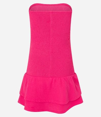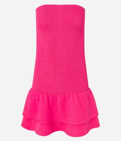 Ref: Vestido tomara que caia feminina, confeccionado em malha texturizado, com babado na saia.
