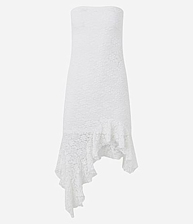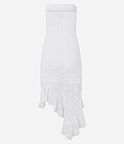 Vestido Tomara que Caia em Renda com Babado Assimétrico
