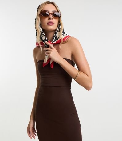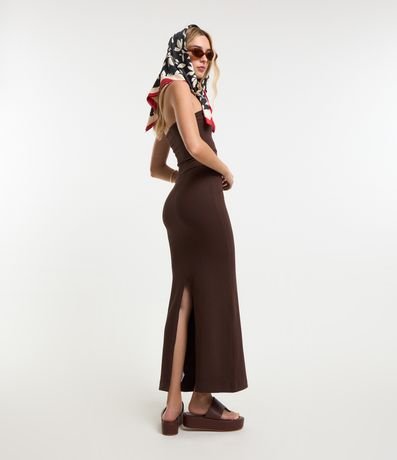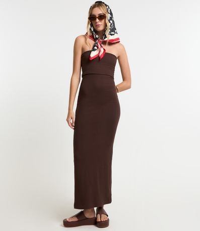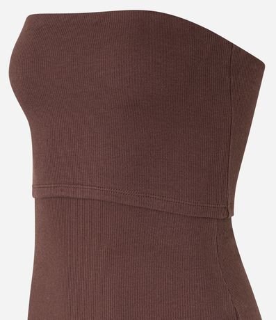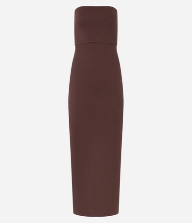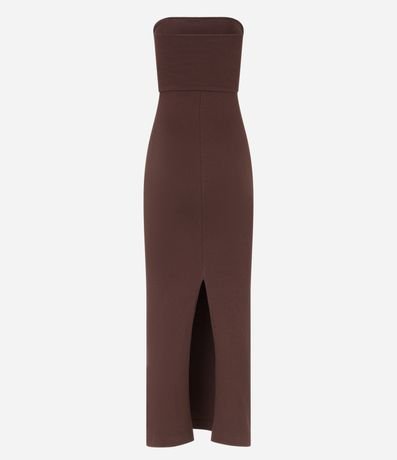 Ref: Vestido modelo midi, confeccionado em malha ribana, com decote tomara que caia, textura canelada e fenda nas costas.