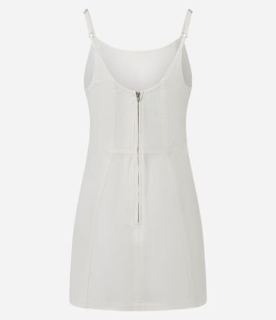 Ref: Vestido curto feminino confeccionado em sarja, com decote canoa e alças finas reguláveis. Sem estampa, possui modelo tubinho e fechamento por zíper nas costas.