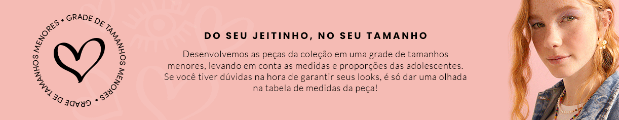 Sabe aqueles lookinhos lindos que fazem você parar de scrollar pela timeline, ganham seu like e entram para a lista de desejos? Eles estão aqui! Nossa nova coleção #teens foi feita especialmente para a geração mais conectada com as novidades. Reunimos estampas de animes, saias pregueadas, jeans e mais trends que estão bombando para você arrasar dentro e fora das redes sociais.
