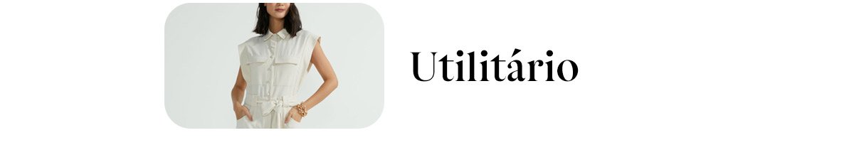Práticas, versáteis e confortáveis, as peças utilitárias são perfeitas para a temporada. O macacão, carro chefe da tendência, une estilo com a facilidade da peça única, enquanto os tons terrosos, de verde fechado e off white trazem sofisticação. Os acessórios com detalhes de correntaria são o complemento perfeito.