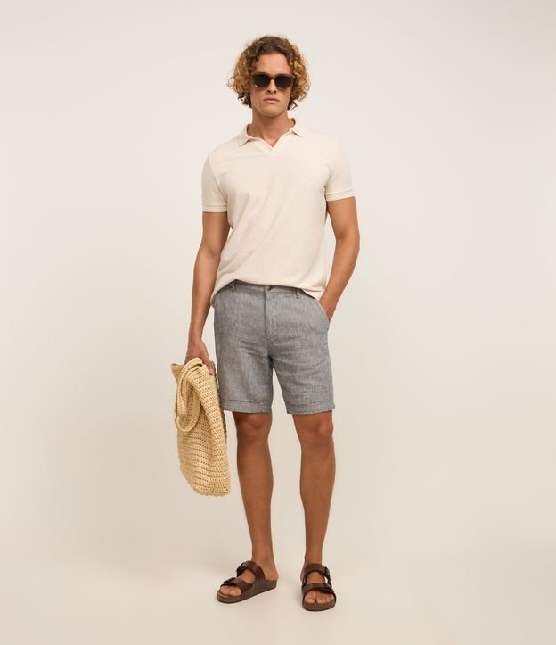 Bermuda masculina de modelo slim, confeccionada em tecido de linho com algodão mais sustentável com boas práticas ambientais e sem estampa. Possui cós fixo com passantes, bolsos traseiros e fechamento frontal tradicional com botão e zíper.