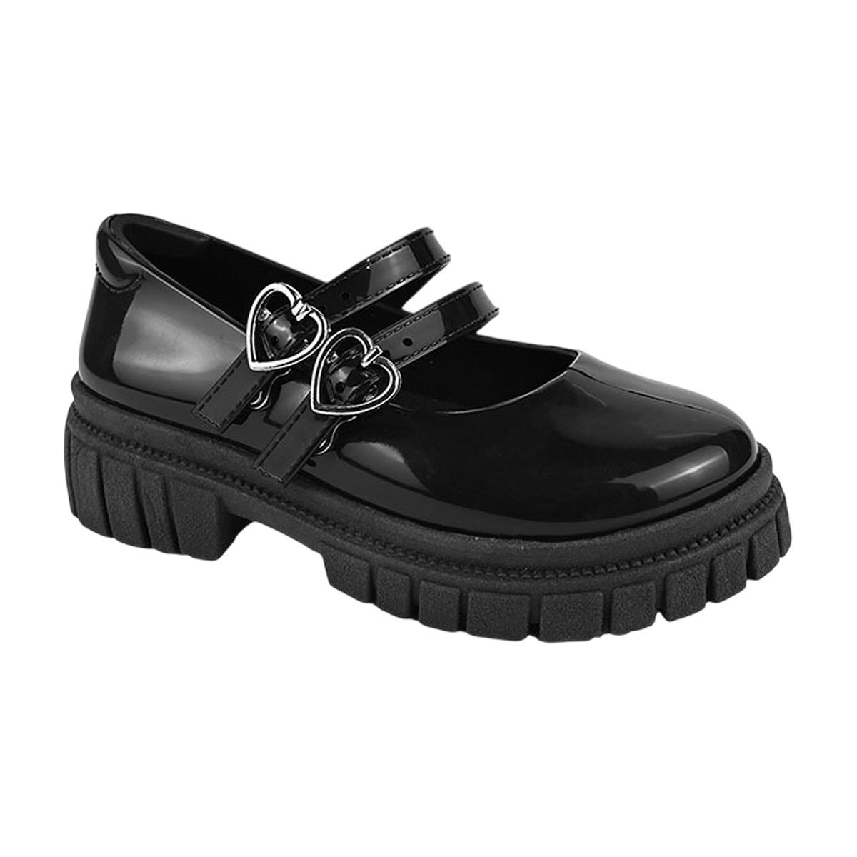Mocassim Infantil Verniz Tratorado Preto com Fivelas de Coração Luelua