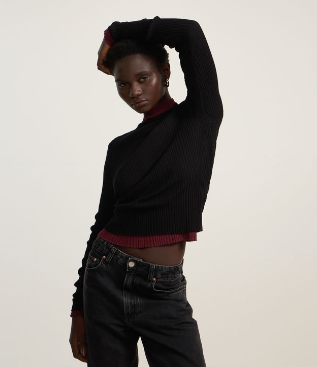 Blusa em Tricô com Golinha Alta Preto