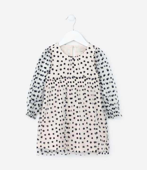 Vestido Infantil em Tule com Estampa Floral - Tam 1 a 5 Anos