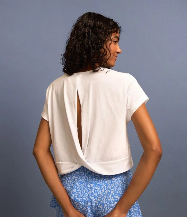 Blusa Boxy Cropped em Algodão com Abertura nas Costas Branco