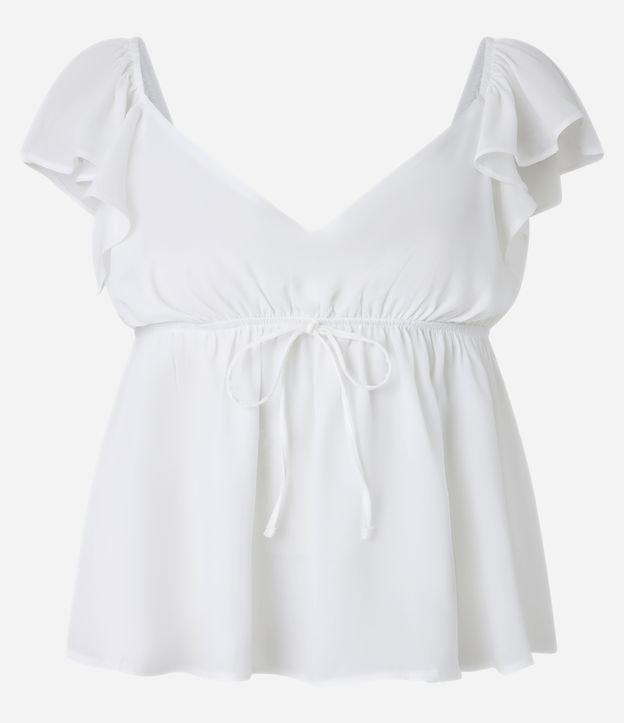 Blusa Boho Chic em Chiffon com Babados e Amarração Branco