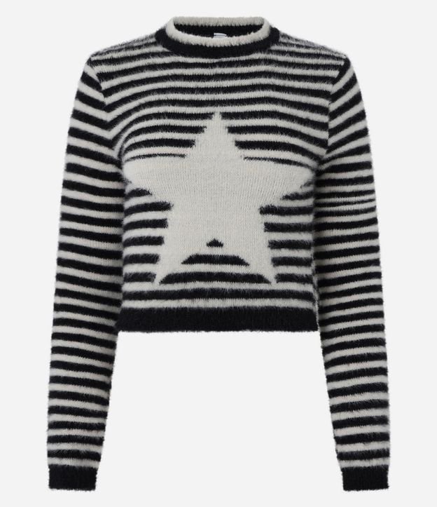 Blusa em Tricô Listrado com Estrela Frontal Preto