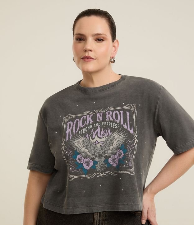 Camiseta Boxy Estonada com Estampa Rock and Roll Curve & Plus Size