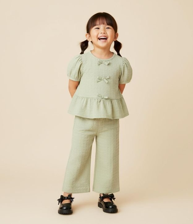 Conjunto Infantil Texturizado com Lacinhos e Calça Wide Leg - Tam 1 a 6 Anos