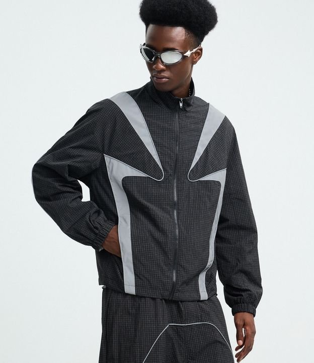 Jaqueta Leve Tecnologico Liso Quadriculado com Painéis Refletivos Preto