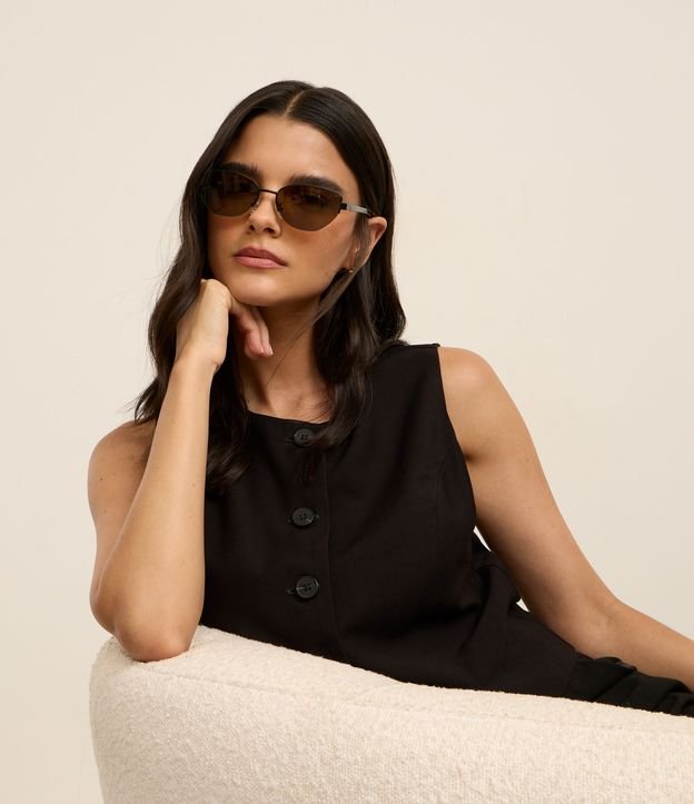 Óculos de Sol Gateado em Metal Liso com Haste fina Preto