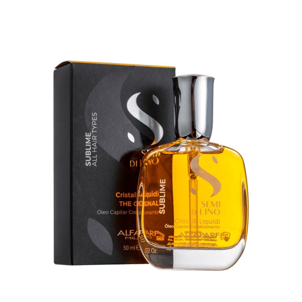 Alfaparf Semi Di Lino Sublime Cristalli Liquidi ainda protege o cabelo dos efeitos nocivos da poluição. Para cabelos brilhantes e bem cuidados.