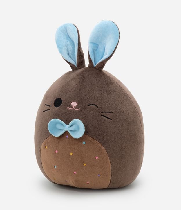 Almofada confeccionada em poliéster. Possui formato de coelho piscando.