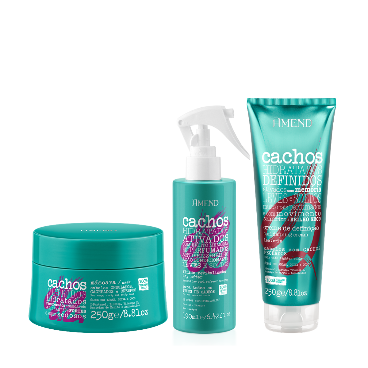 Sobre o Amend Cachos Masc 250ml + Leave-in Cacheado 250ml + Fluído Day After 190ml