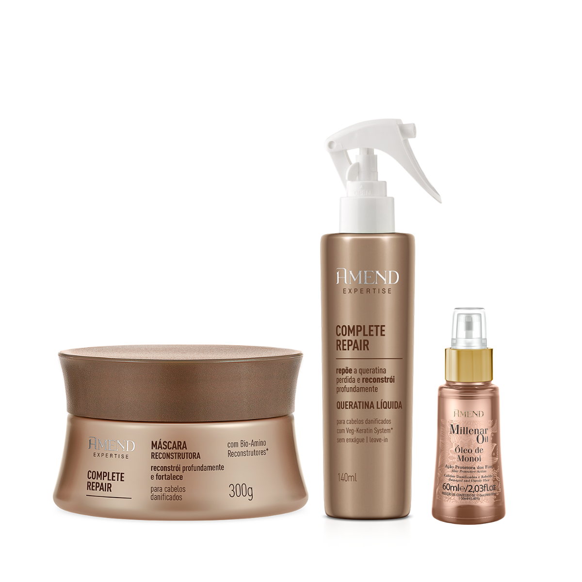 Amend Expertise Complete Repair Masc 300ml + Queratina Líquida 150ml + Millenar Oil Monói 60ml