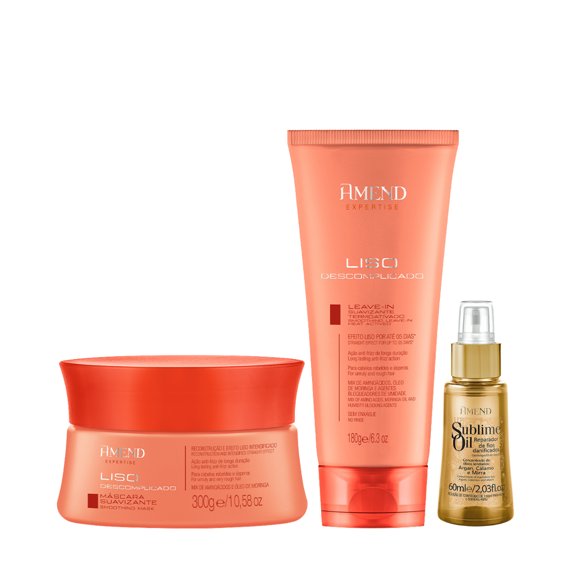 Sobre o Amend Expertise Liso Descomplicado Masc 300ml + Leave-in 180ml + Sublime Oil 60ml