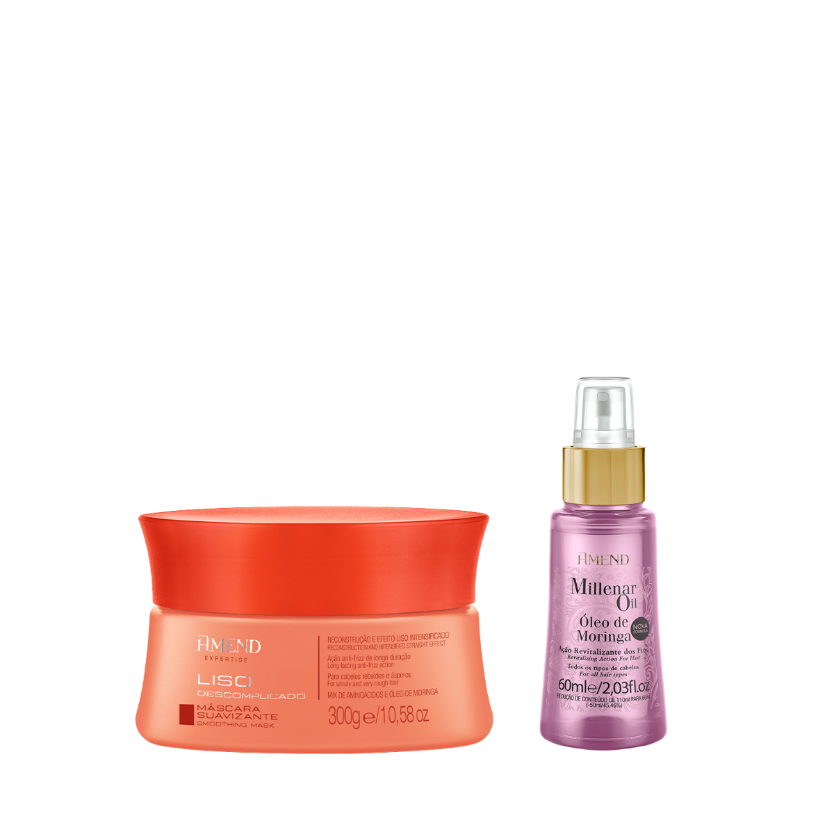 Sobre o Amend Expertise Liso Descomplicado Masc 300ml + Millenar Oil Moringa 60ml