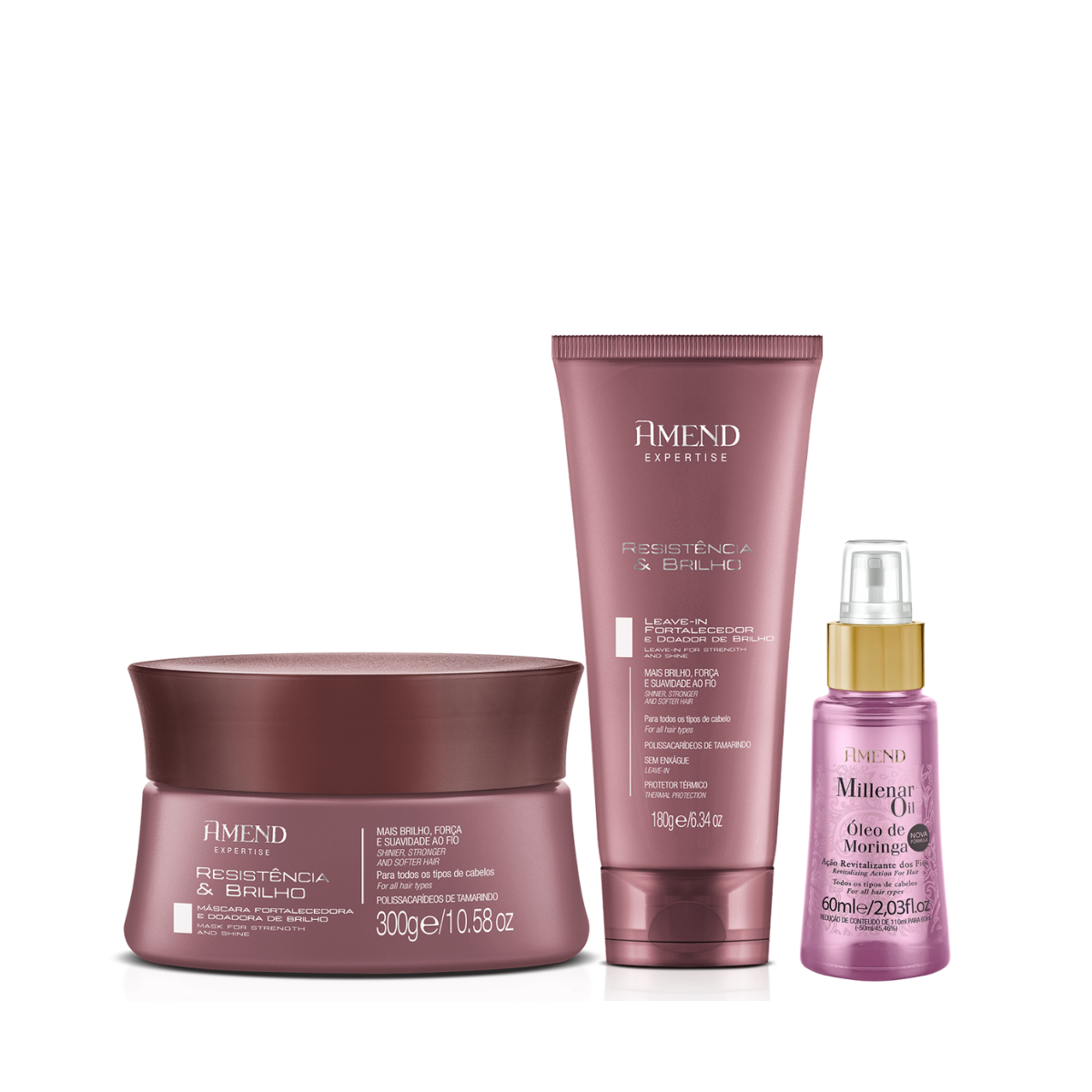 Amend Expertise Resistência e Brilho Masc 300ml + Leave-in 180ml + Millenar Oil Moringa 60ml