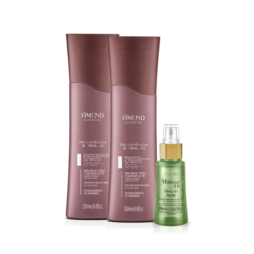 Amend Expertise Resistência e Brilho Shampoo 250ml + Condicionador 250ml + Millenar Oil Inchi 60ml