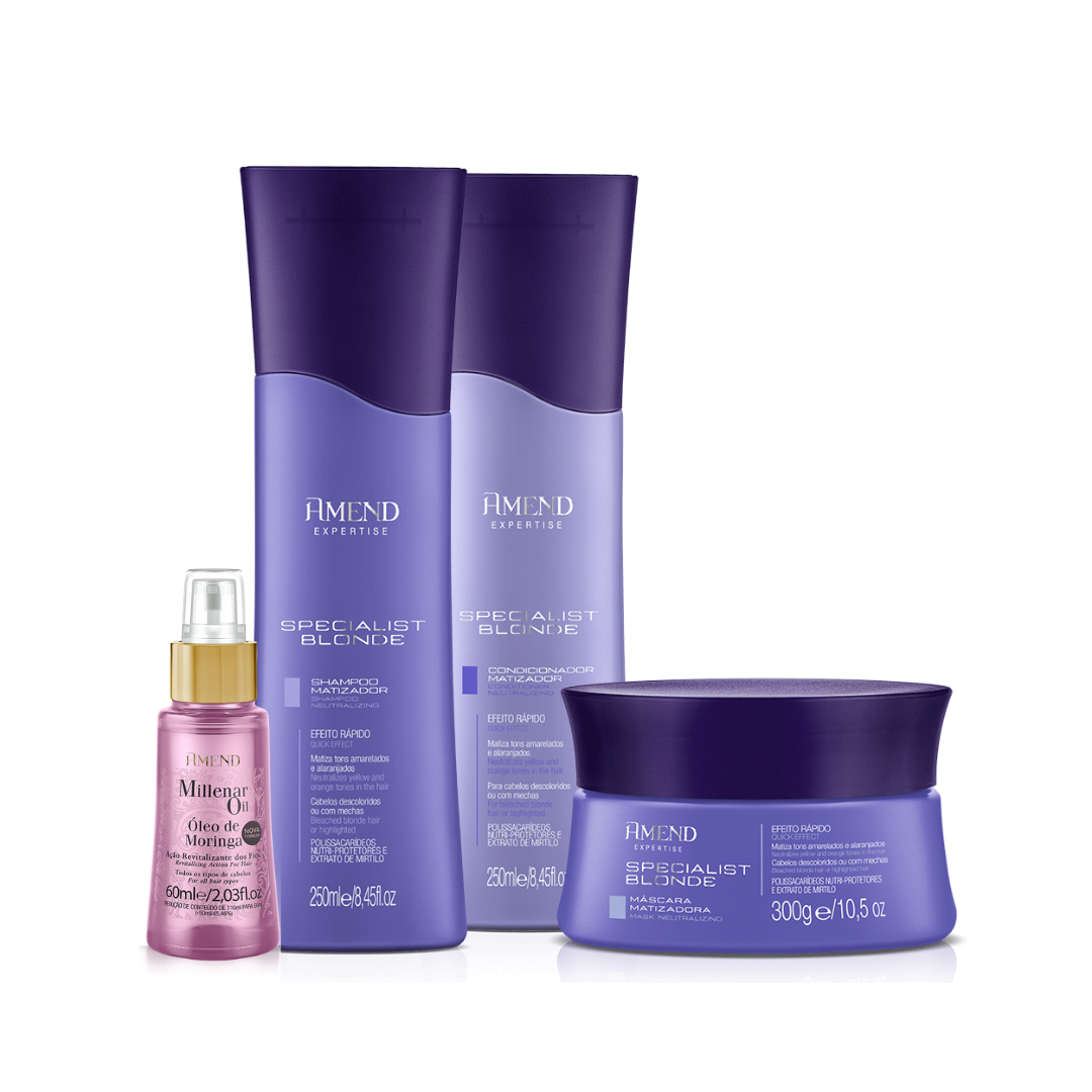 Amend Expertise Specialist Blonde Shampoo 250ml + Condicionador 250ml + Mascara 300ml + Millenar Oil Moringa 60ml ÚNICO
