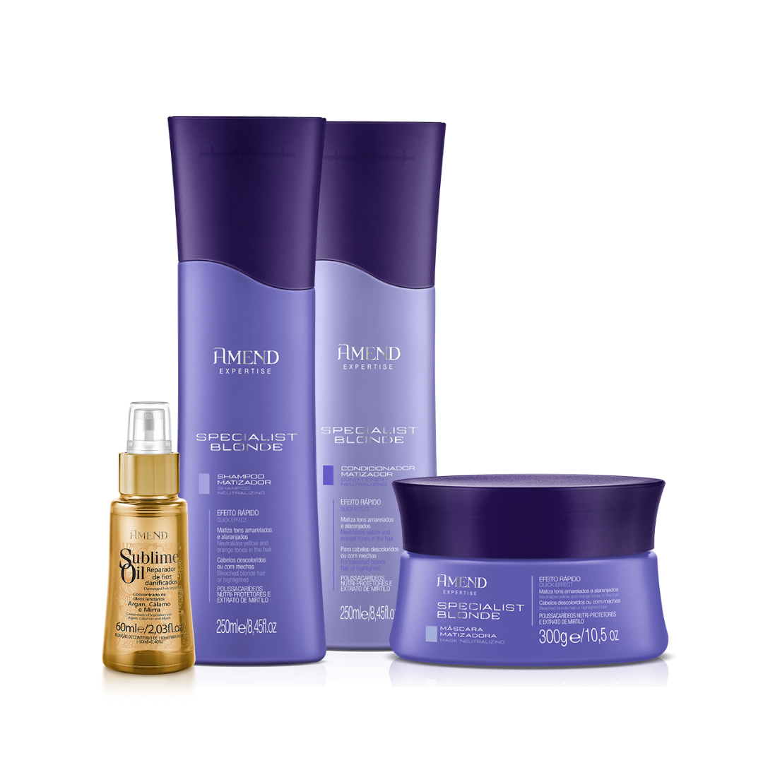 Sobre o Amend Expertise Specialist Blonde Shampoo 250ml + Condicionador 250ml + Máscara 300ml + Sublime Oil 60ml