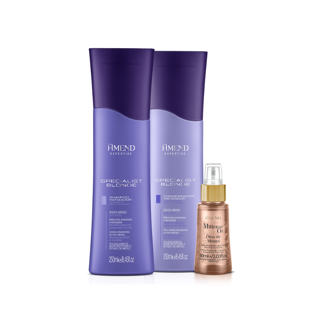 Amend Expertise Specialist Blonde Shampoo 250ml + Condicionador 250ml + Millenar Oil Monói 60ml ÚNICO
