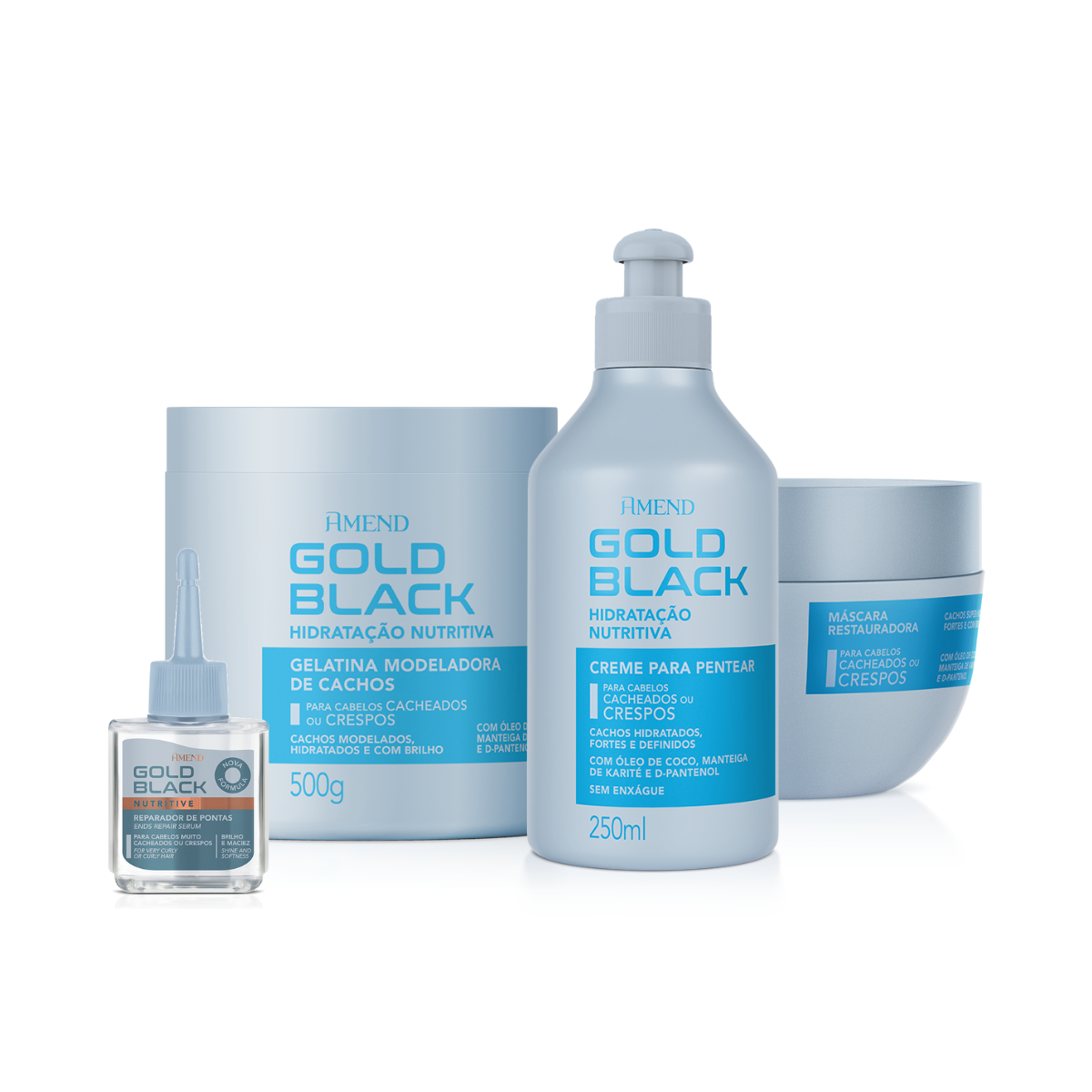 Amend Gold Black Hidratação Nutritiva Masc 250ml + Cpp 250ml + Gelatina 500ml + Óleo 30ml ÚNICO