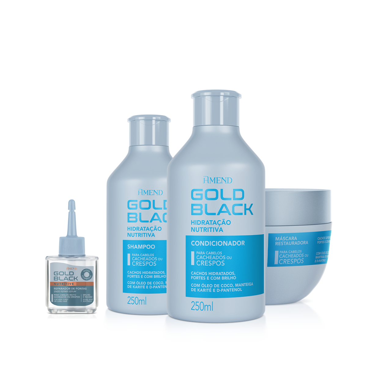 Sobre o Amend Gold Black Hidratação Nutritiva Sh 250ml + Cond 250ml + Masc 250ml + Óleo 30ml