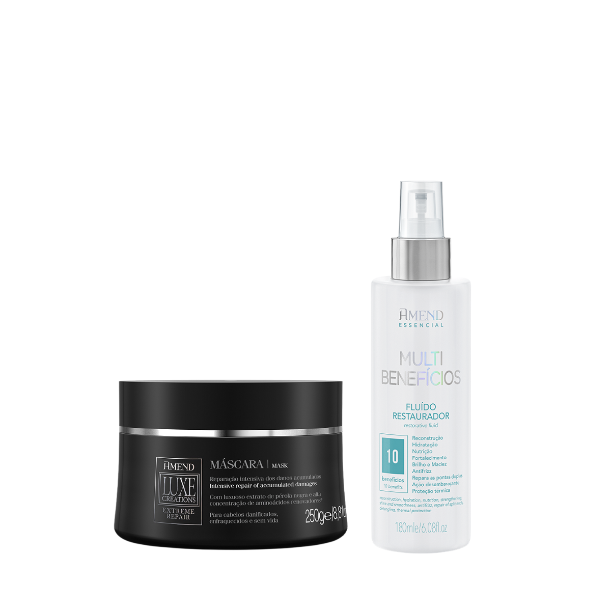 Amend Luxe Creations Extreme Repair Masc 300ml + Essencial Fluído 180ml ÚNICO