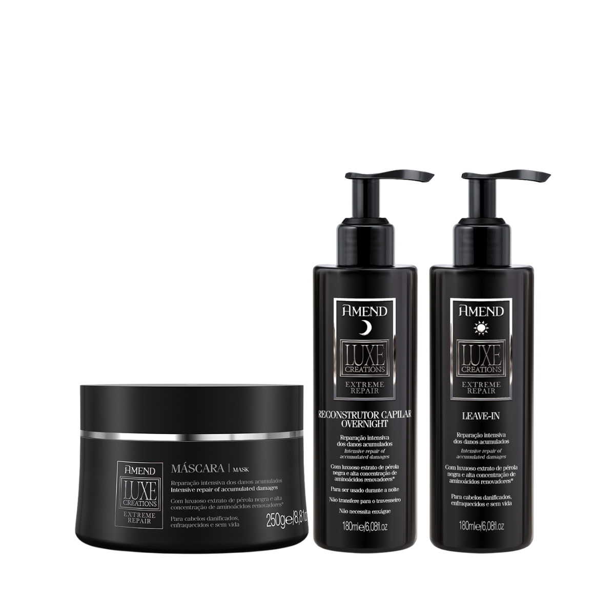 Amend Luxe Creations Extreme Repair Masc 300ml + Overnight 180ml + Leave-in 180ml ÚNICO