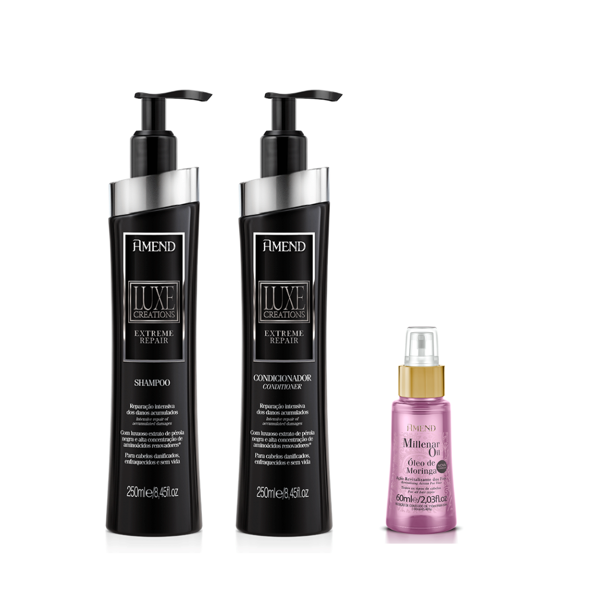 Amend Luxe Creations Extreme Repair Sh 250ml + Cond 250ml + Millenar Oil Moringa 60ml ÚNICO