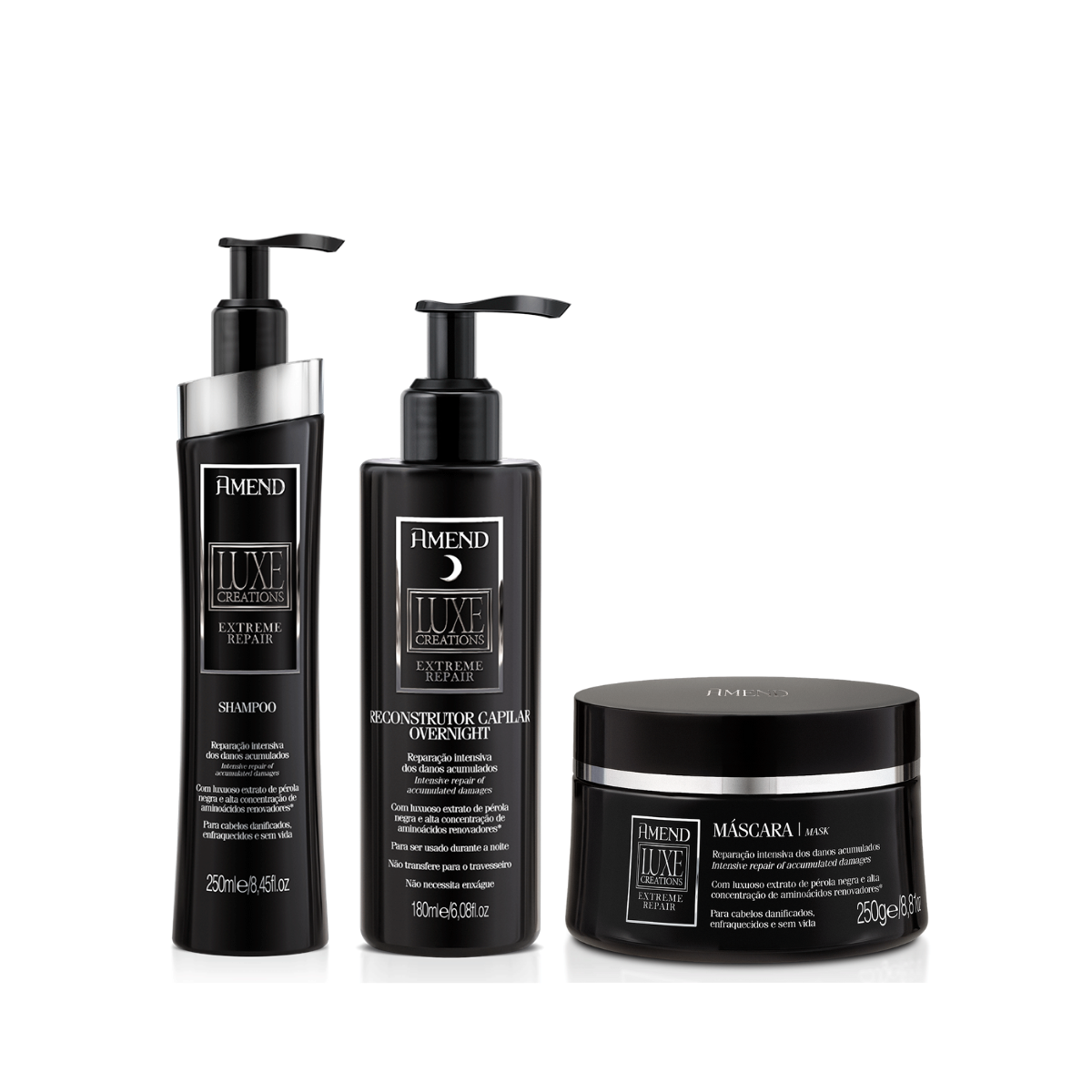 Amend Luxe Creations Extreme Repair Sh 250ml + Masc 250ml + Overnight 180ml ÚNICO