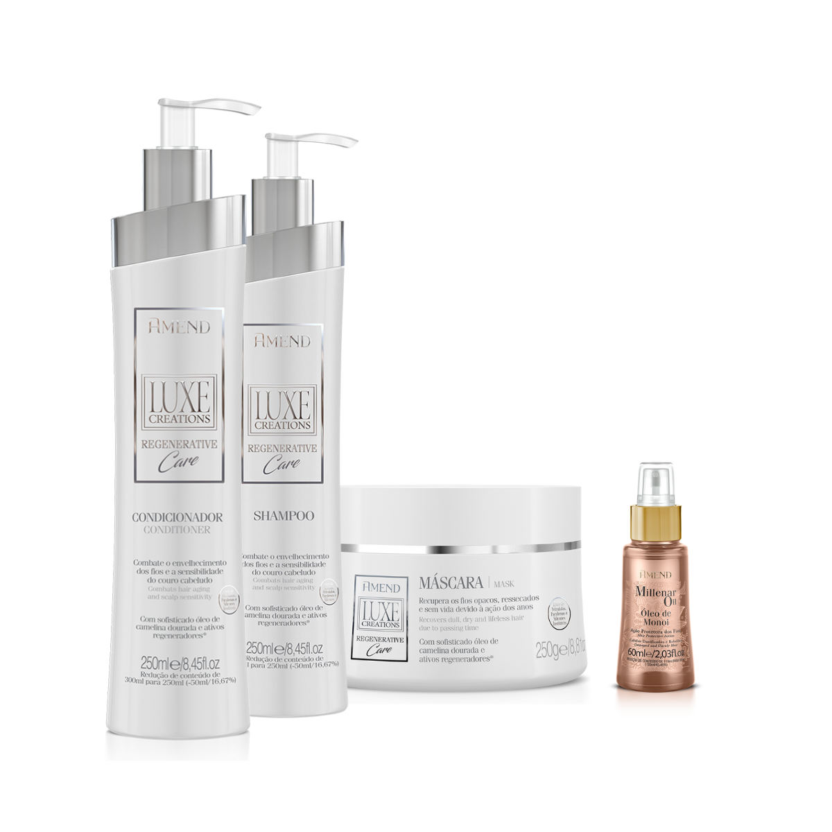 Amend Luxe Creations Regenerative Care Sh 250ml + Cond 250ml + Masc 250ml + Millenar Oil Monói 60ml