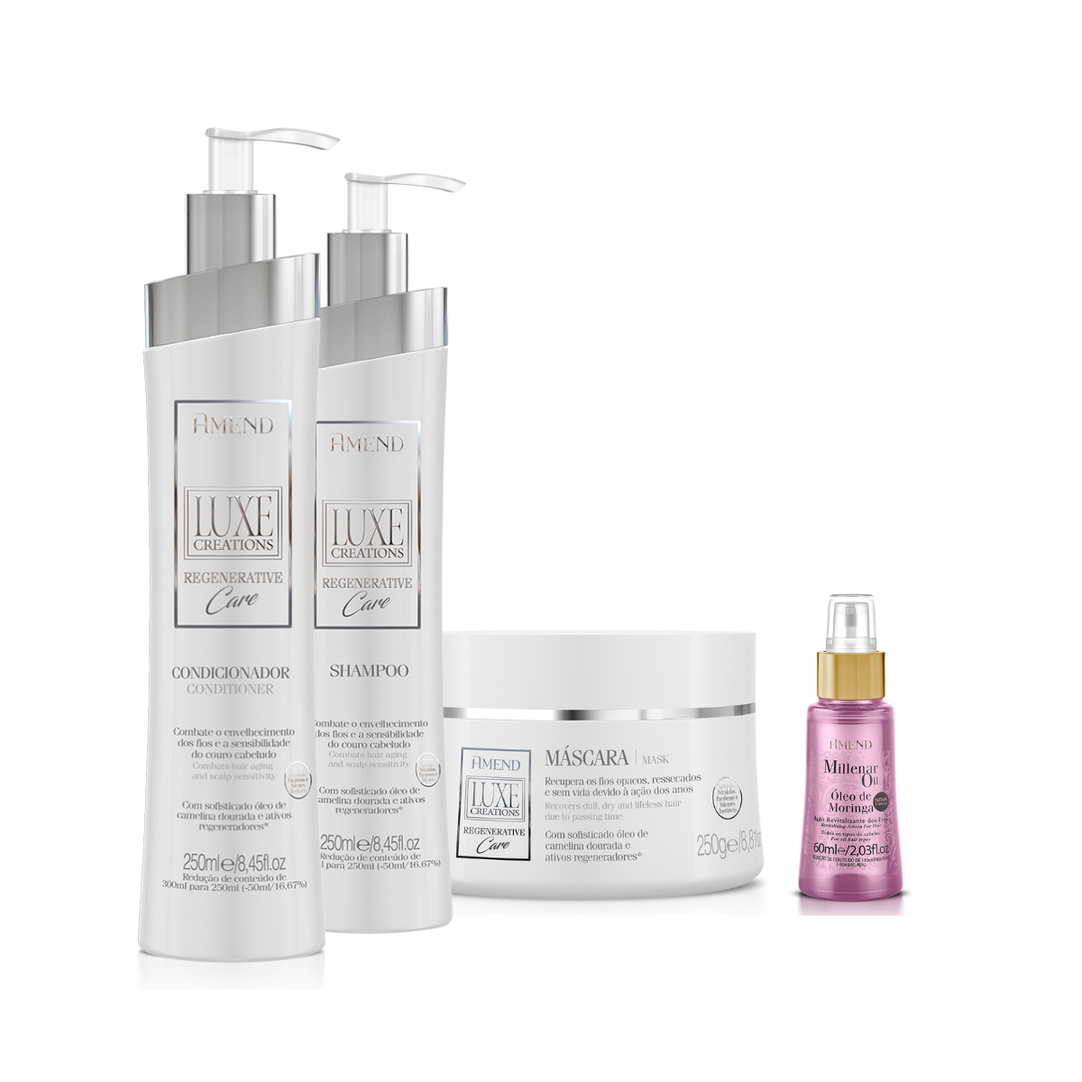 Amend Luxe Creations Regenerative Care Sh 250ml + Cond 250ml + Masc 250ml + Millenar Oil Moringa 60m