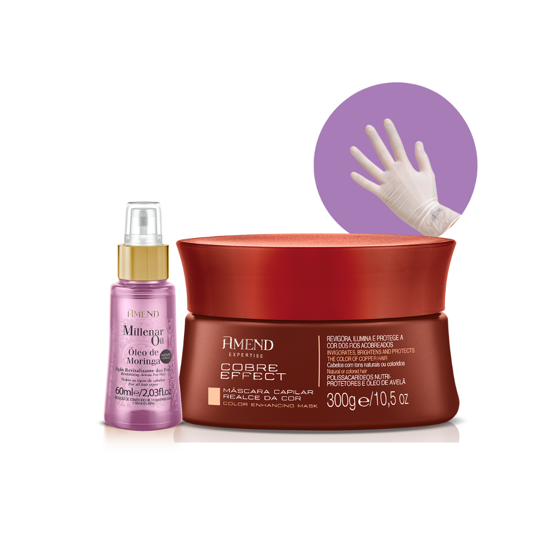 Amend Mascara Matizadora Cobre Effect + Oil Moringa + Luva